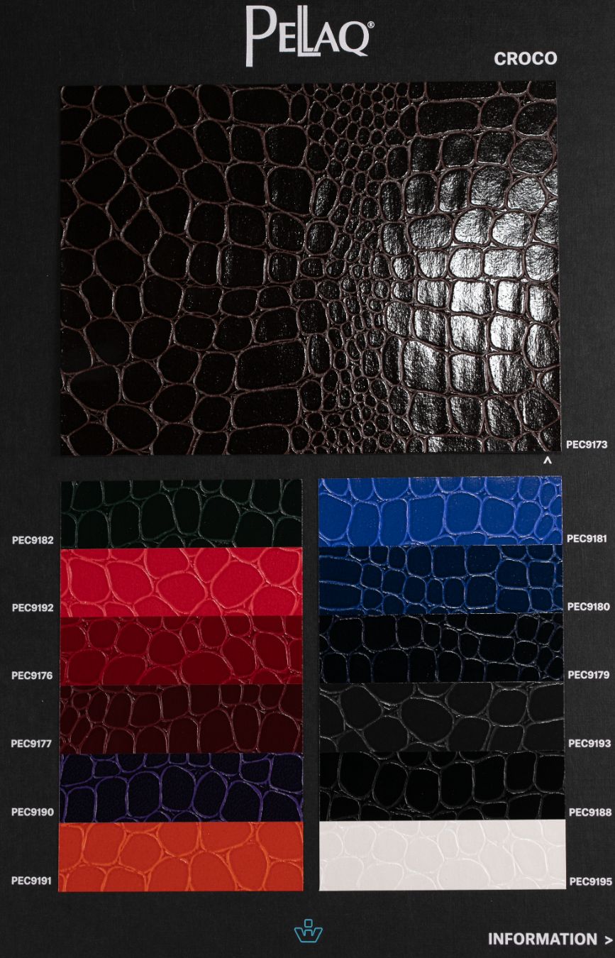 Egzotični izgled PELLAQ® serije daje vašim projektima ekstravagantni izgled. Materijal je izuzetno otporan na habanje i izdržljiv, sa završnom strukturama koje nalikuju egzotičnim kožama reptila. Papiri zasićeni lateksom dostupni su u različitom dizajnu i bojama i bez štetnih plastifikatora ili teških metala. Mnogi proizvodi PELLAQ® serije takođe imaju FSC ™ sertifikat.