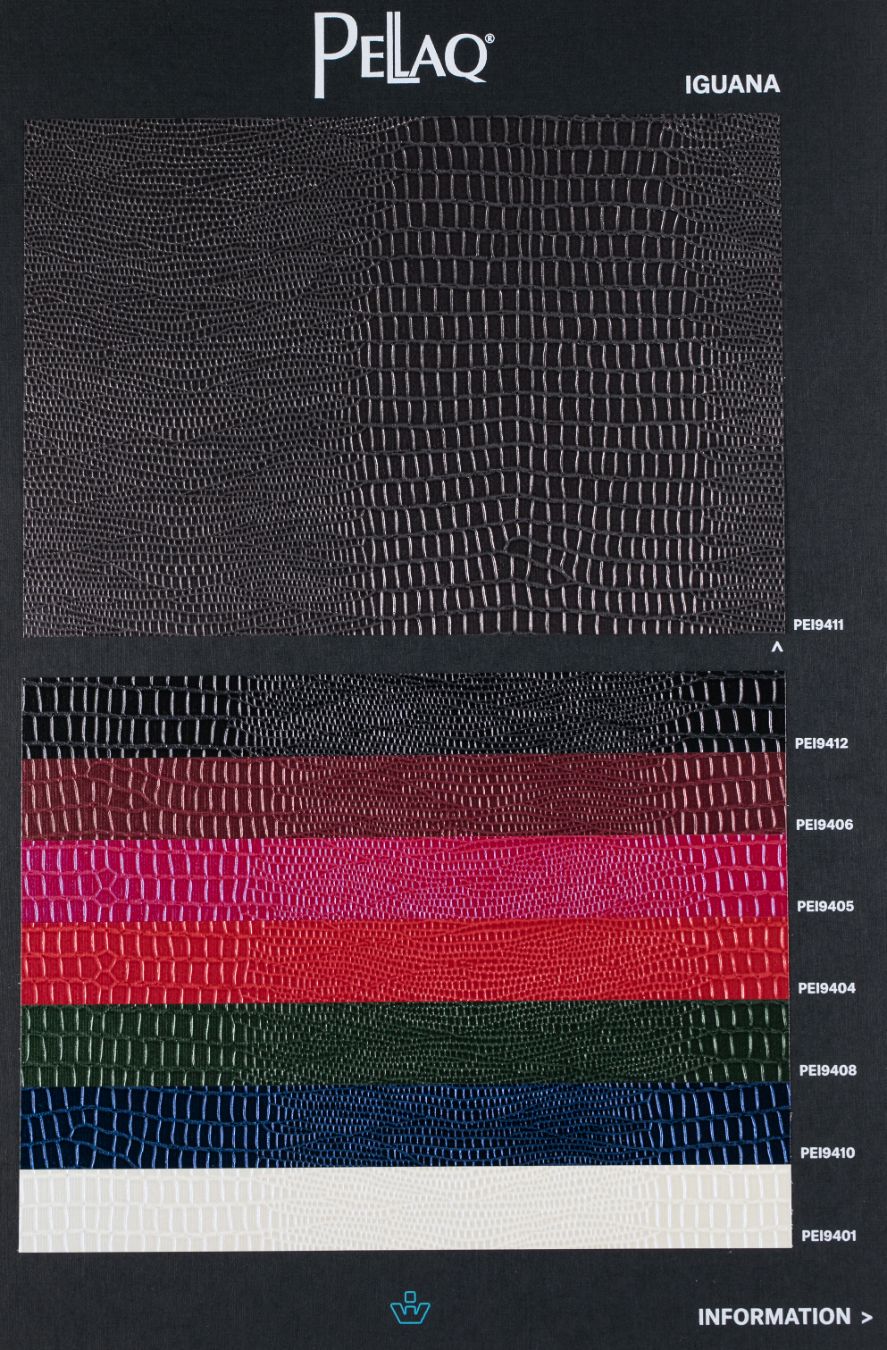 Jedinstveni knjigovezački materijal, po izgledu i na dodir sličan koži iguana guštera, elegantne, sjajne površine, otporne na ogrebotine i prljanje, u 8 modernih boja.