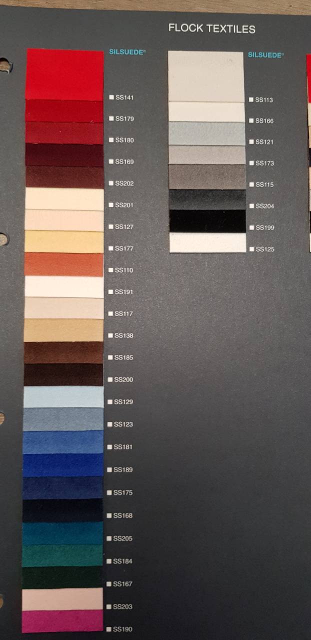Visokokvalitetni flok bez papirne osnove. Koristi se za luksuzna pakovanja, oblaganje izloga, izradu zlatarskog aksesoara. Dostupan u 12 boja, u rolnama širine 140 cm. Bez minimalne količine za poručivanje.