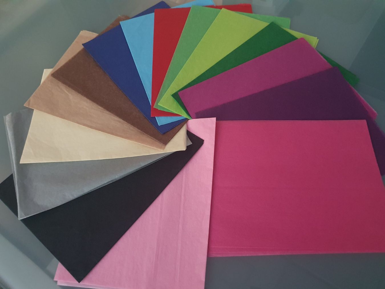 Novo u „Belgravia“ programu je 17mg papir u različitim bojama namenjen svima koji se bave dekorativnim pakovanjem, proizvodnjom ukrasnih, kutija, cvetnih aranžmana... Papir je u dimenzijama 50x70cm - 500 tabaka u logu. Dostupno iz našeg beogradskog magacina u 16 modernih boja.
