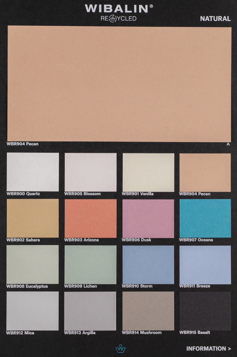 Kolekcija WIBALIN® RECYCLED ide dalje od mnogih recikliranih papira. Proizvod je napravljen od 100% recikliranih vlakana papira, zadržavajući kvalitet po kojem su poznati svi WIBALIN® papiri. Njegova paleta boja nadahnjuje nijansama prirode nudeći razigran opseg za vaše projekte.
